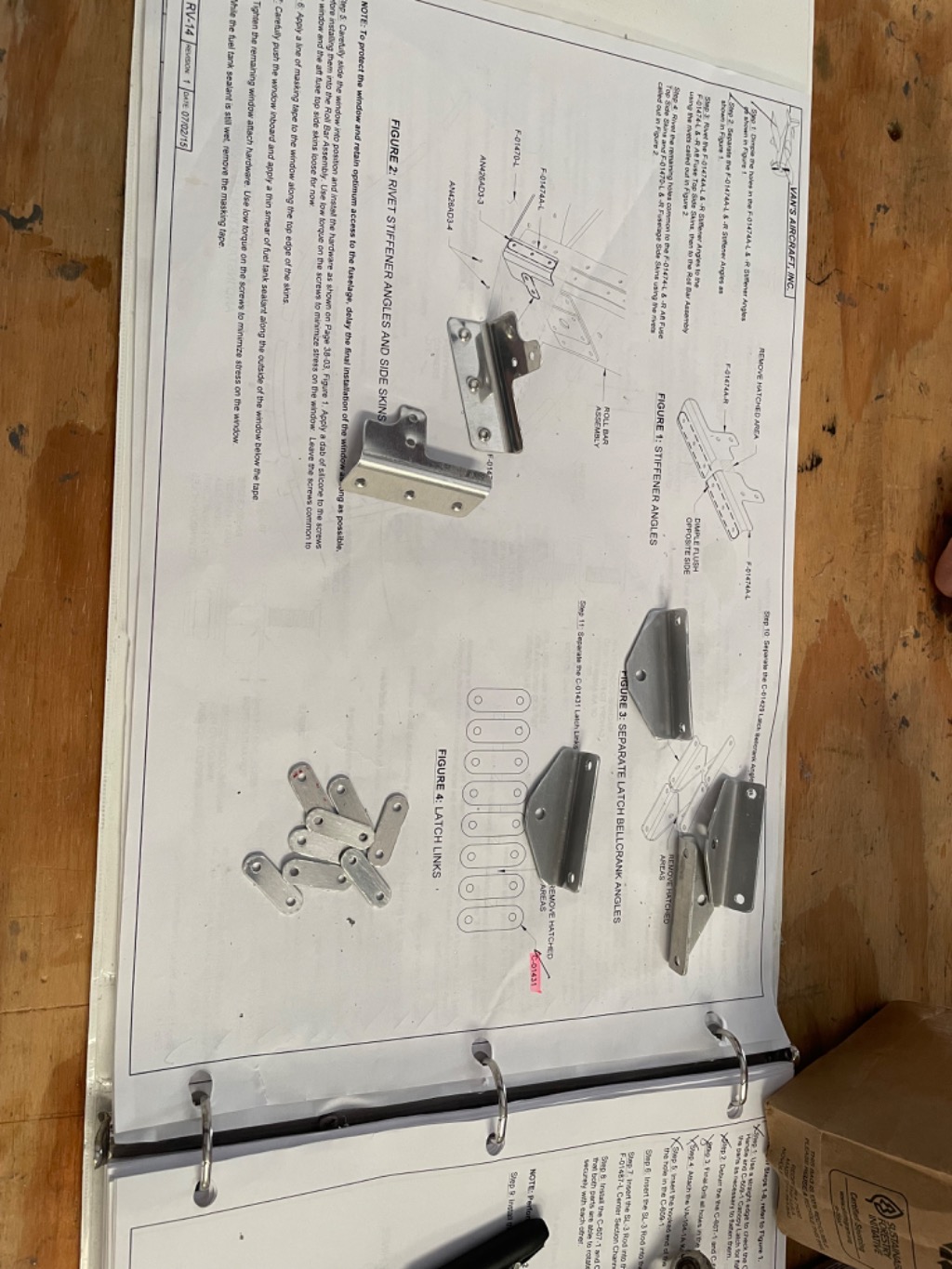 Find all needed parts. Rivet stiffener angles to side skins. Prep bell crank angles and latch links. Find all parts for canopy latch installation.