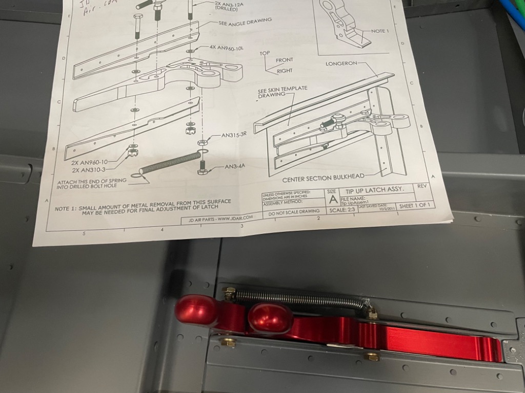 Paint and install latch bellcrank angle. Install canopy latch torque tube. Paint latch links. Paint latch pushrod. Final adjust JD Air latch.