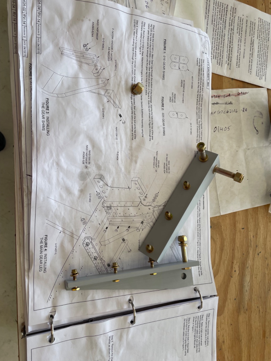 Located parts and assembled main gear leg axles to gear legs. Located all parts for installing gear legs to fuse.