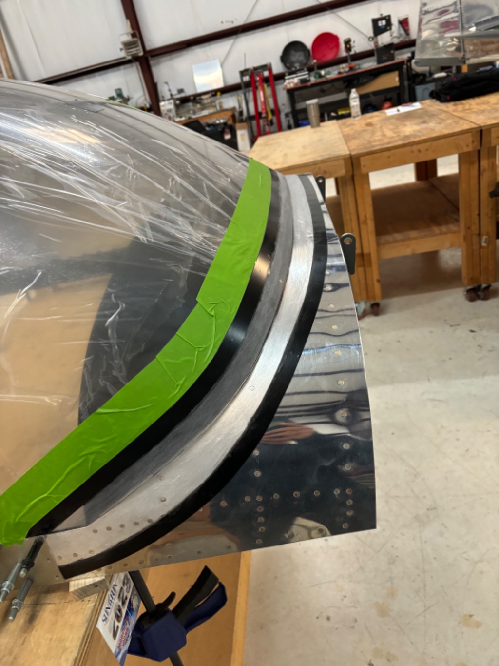 Scuffed, countersunk, installed hardware on canopy. Installed defrost fans