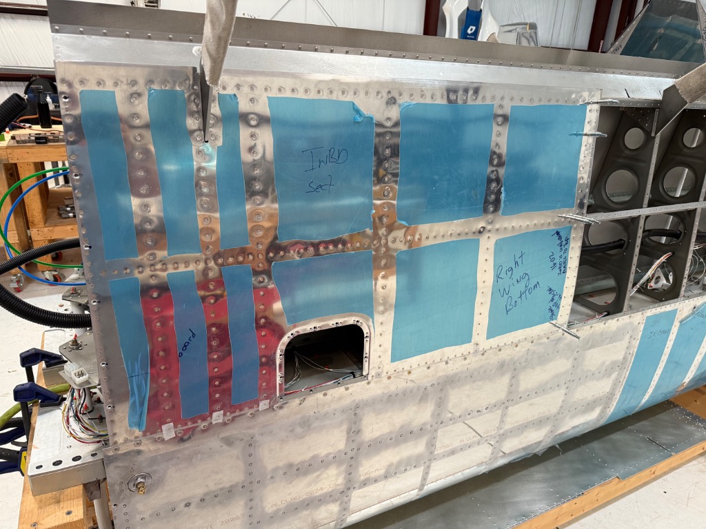 Riveted right inboard bottom wing skin.